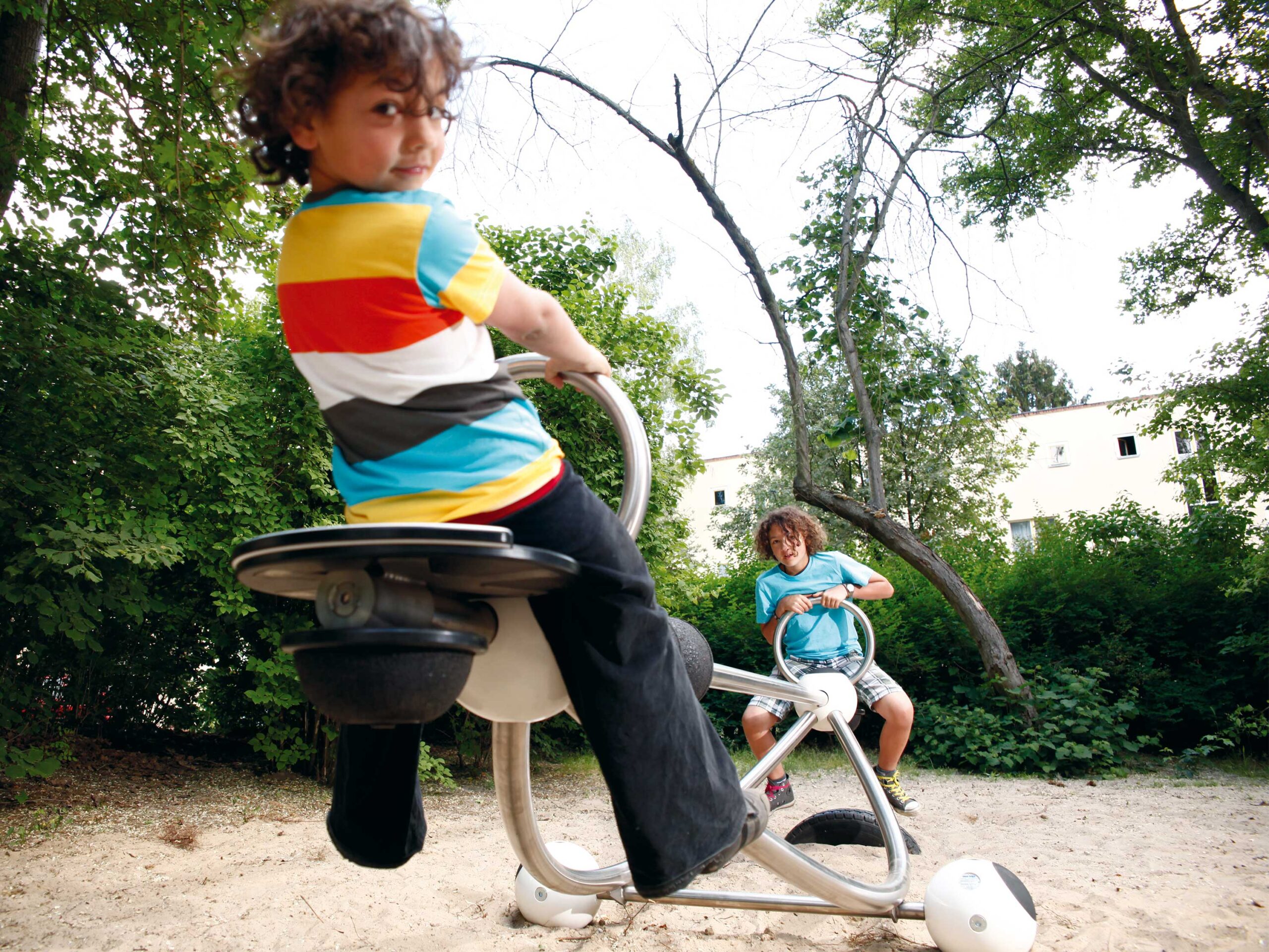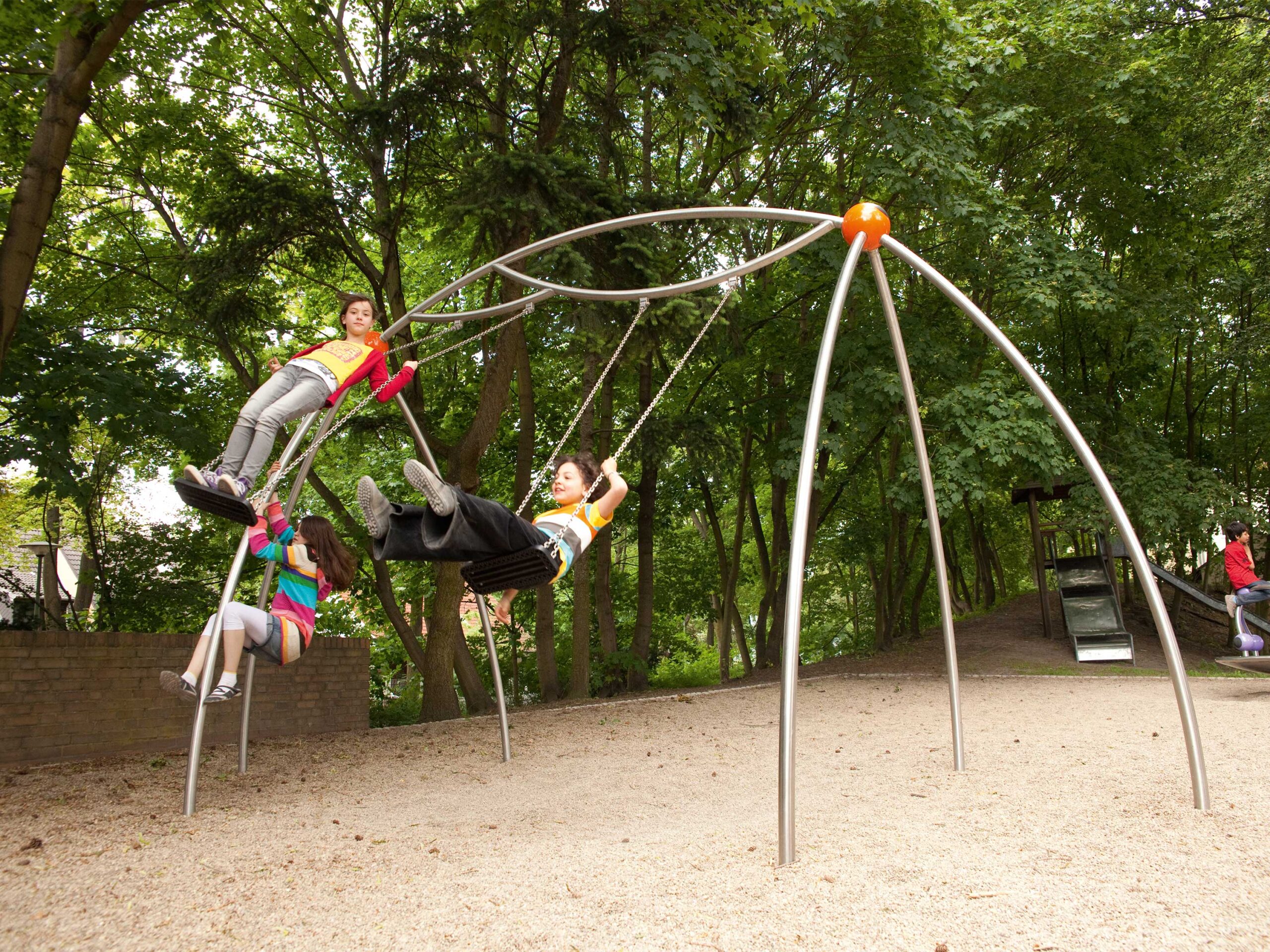 Abgerundet wird der Spielplatz von zwei Spielpunkten der Berliner Produktgruppe Urban Design. Die Doppel-Schaukel Swingo.2.4 ermöglicht zwei Kindern gleichzeitig das Schaukeln und war für Pohlann von Anfang an gesetzt: „Schaukeln ist wichtig für einen Spielplatz, das geht immer!“